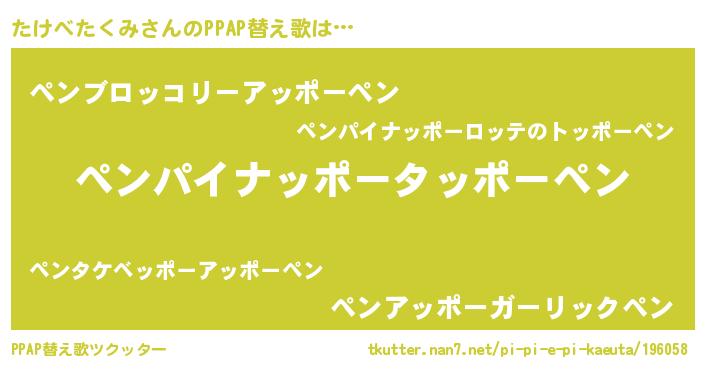 | ヘコむあだ名 | 『たけべたくみ(震え声)』『たけふぇ~』 |