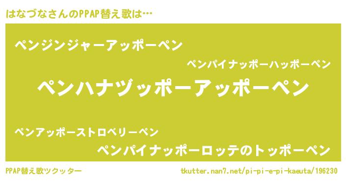 | ピコ太郎風あだ名 | 『ハナ一郎』『ハコ十郎』『ハハ太郎』 |