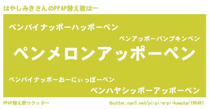 | 意味不明あだ名 | 『自称はやしみき』『ペロリンはやしみき』 |