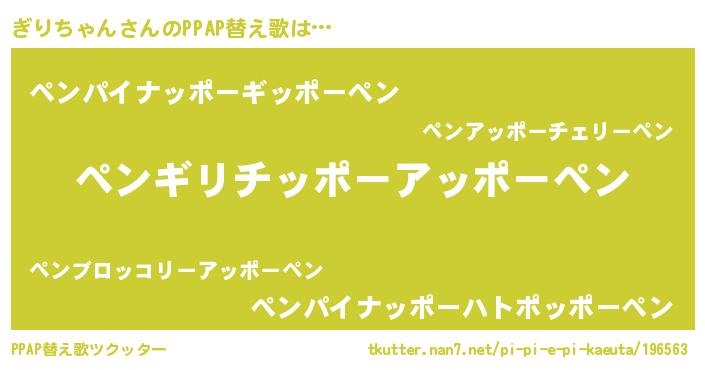 | ピコ太郎風あだ名 | 『ギリ二郎』『ピコギ郎』『ギギ太郎』 |