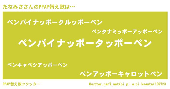 | ピコ太郎風あだ名 | 『ピコタ郎』『タタ太郎』『ピタ次郎』 |