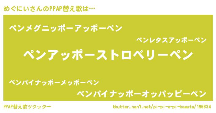 | ピコ太郎風あだ名 | 『ピメ一郎』『メグ六郎』『メメ太郎』 |