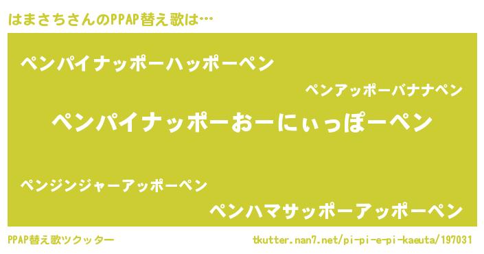 | ピコ太郎風あだ名 | 『ハハ太郎』『ピコハ郎』『ハマ三郎』 |