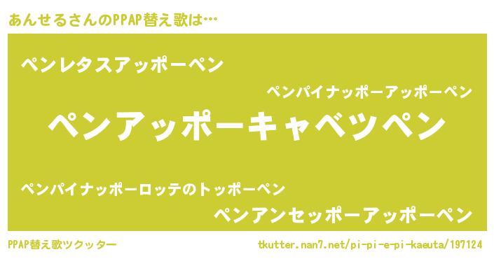 | ピコ太郎風あだ名 | 『ピア四郎』『アコ五郎』『アン一郎』 |