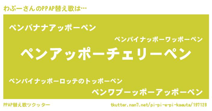 | ピコ太郎風あだ名 | 『ピワ三郎』『ワコ次郎』『ワプ太郎』 |