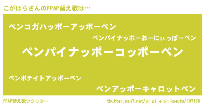 | ピコ太郎風あだ名 | 『ピココ郎』『コガ六郎』『ピコ八郎』 |
