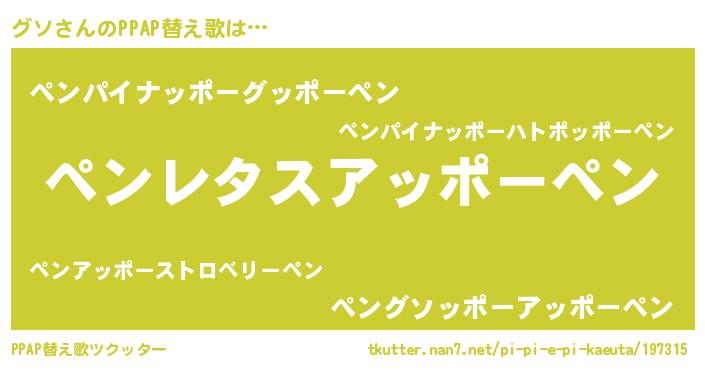 | ピコ太郎風あだ名 | 『グコ史郎』『ピコグ郎』『グソ八郎』 |