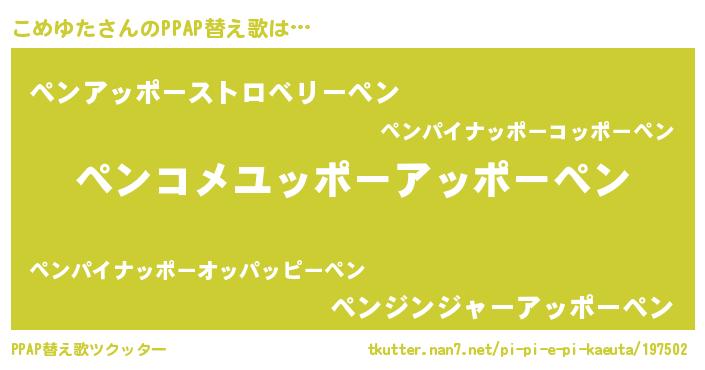 | 料理風あだ名 | 『こめゆたごはん』 |