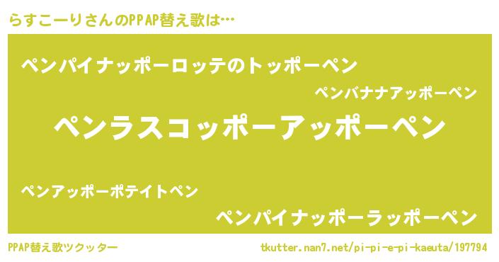 | ピコ太郎風あだ名 | 『ラス二郎』『ララ太郎』『ピコラ郎』 |
