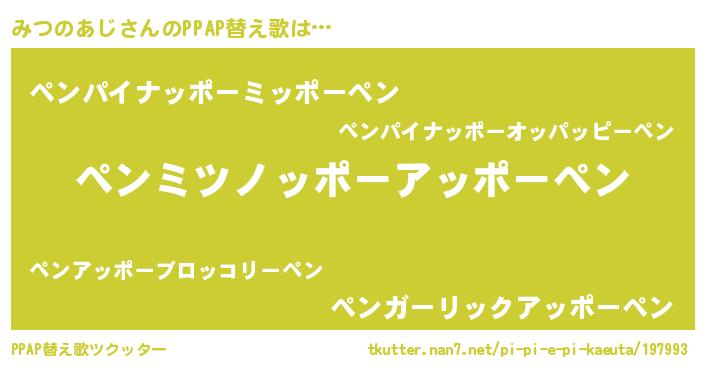 | ピコ太郎風あだ名 | 『ミツ四郎』『ピコミ郎』『ミコ八郎』 |