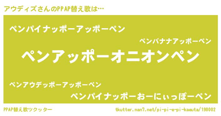 | 意味不明あだ名 | 『たけのこ科アウディズ属』 |