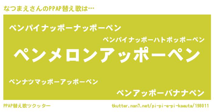 | ピコ太郎風あだ名 | 『ナコ太郎』『ピコナ郎』『ピナ三郎』 |