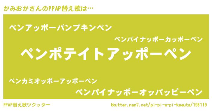 | ピコ太郎風あだ名 | 『カコ四郎』『ピカ二郎』『カカ太郎』 |