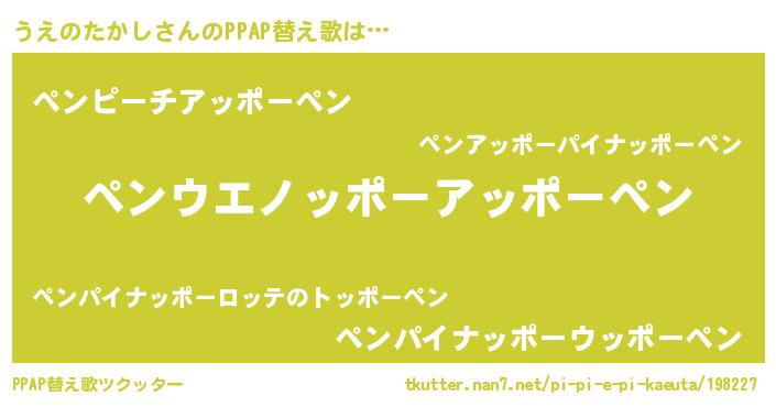 | ポケモン風あだ名 | 『ヒウエノタカシ』『ウエチュウ』 |
