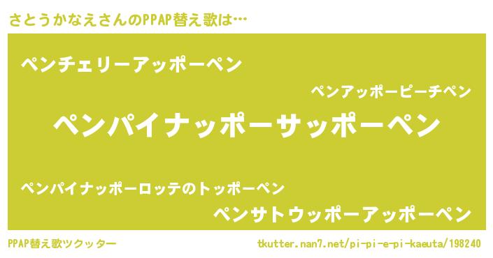 | 欧米人風あだ名 | 『ダレノガレさとうかなえ』 |
