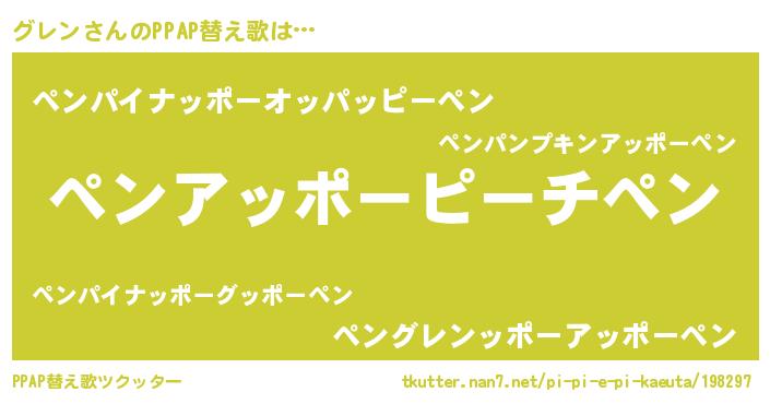 | 女子向けラノベタイトル風あだ名 | 『グレンの雑貨屋さん』『グレン恋絵巻』 |
