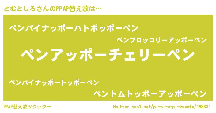 | ピコ太郎風あだ名 | 『ピト一郎』『トト太郎』『トム十郎』 |