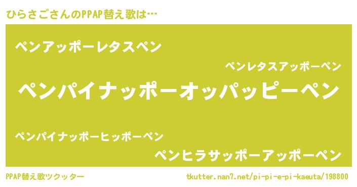 | ピコ太郎風あだ名 | 『ヒヒ太郎』『ピヒ史郎』『ヒラ太郎』 |