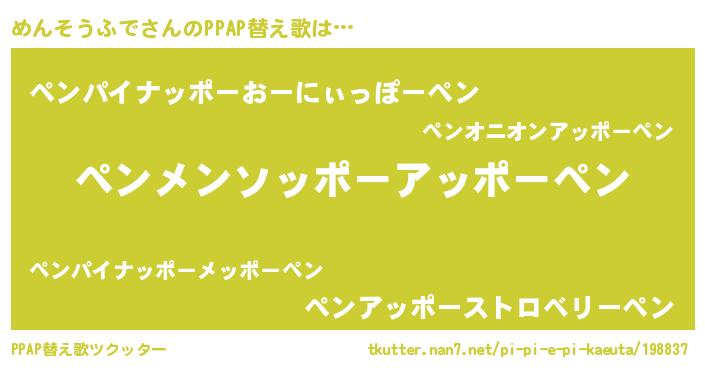 | ピコ太郎風あだ名 | 『メン三郎』『メメ太郎』『ピメ六郎』 |