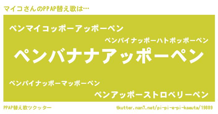 | ピコ太郎風あだ名 | 『マコ次郎』『マイ一郎』『ピマ次郎』 |