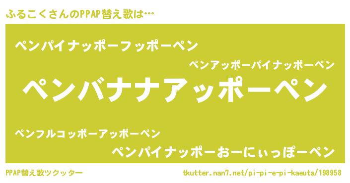 | ピコ太郎風あだ名 | 『フコ三郎』『ピコフ郎』『フフ太郎』 |