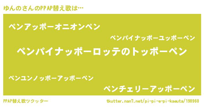 | 意味不明あだ名 | 『エリンギ科ゆんの属』『ペロリンゆんの』 |