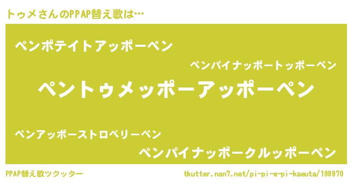 | 意味不明あだ名 | 『とにかく怪しいトゥメ』『自称トゥメ』 |