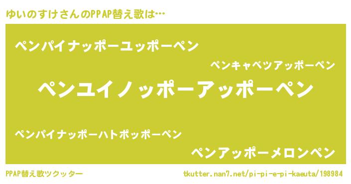 | ピコ太郎風あだ名 | 『ユイ二郎』『ピコユ郎』『ピユ六郎』 |