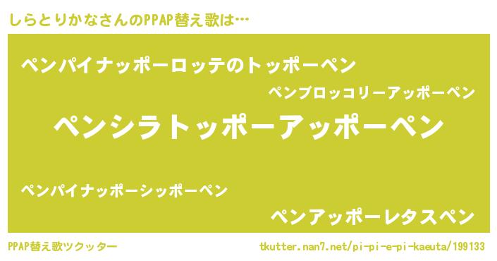 | ピコ太郎風あだ名 | 『シラ史郎』『シシ太郎』『ピシ四郎』 |
