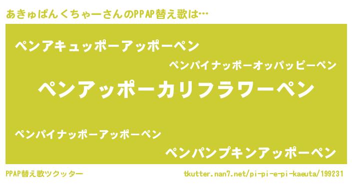 | ピコ太郎風あだ名 | 『ピア史郎』『アキ十郎』『アコ史郎』 |