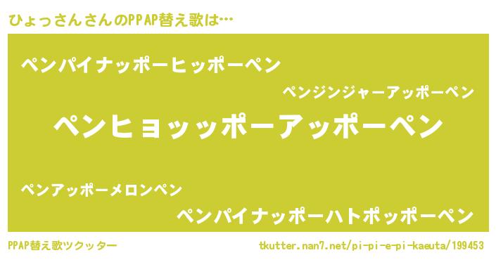 | ピコ太郎風あだ名 | 『ヒョ次郎』『ピコヒ郎』『ヒヒ太郎』 |