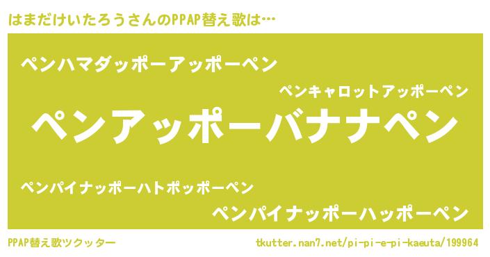 | ピコ太郎風あだ名 | 『ピハ三郎』『ハマ二郎』『ピコハ郎』 |