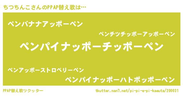 | ピコ太郎風あだ名 | 『ピコチ郎』『チコ次郎』『チチ太郎』 |