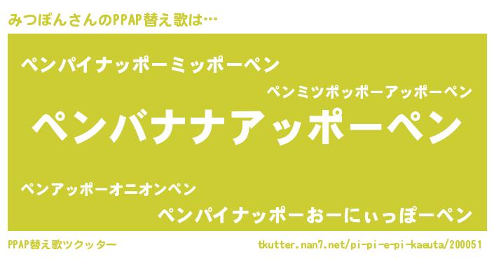 | 意味不明あだ名 | 『住所不定無職みつぽん(8歳)』 |