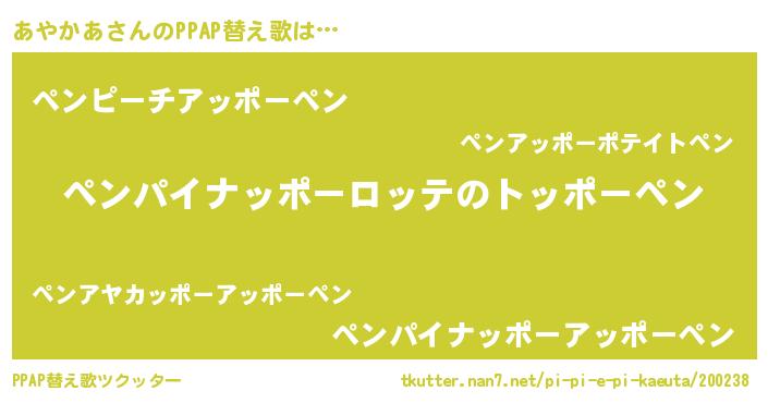 | 欧米人風あだ名 | 『あやかあ・ステッグマイヤー』 |