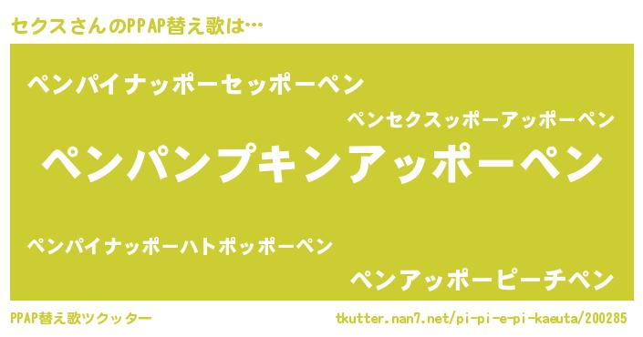 | 意味不明あだ名 | 『ペロリンセクス』『永久保存セクス』 |
