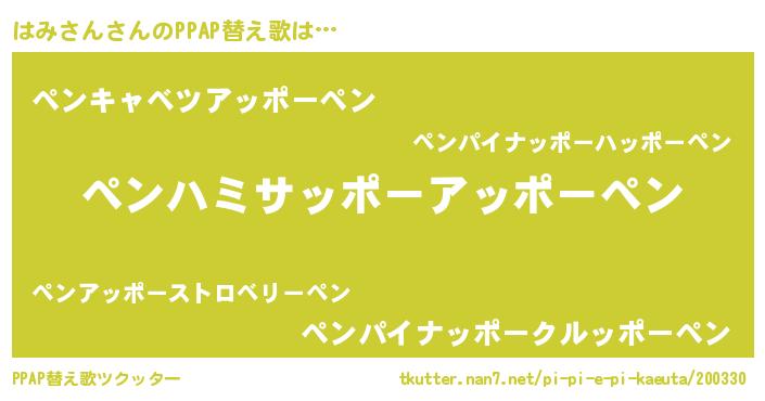 | ピコ太郎風あだ名 | 『ハミ二郎』『ハコ十郎』『ハハ太郎』 |