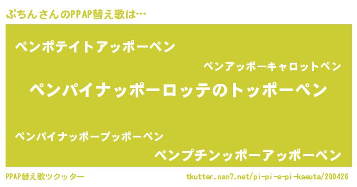 | ピコ太郎風あだ名 | 『ププ太郎』『プコ二郎』『プチ史郎』 |