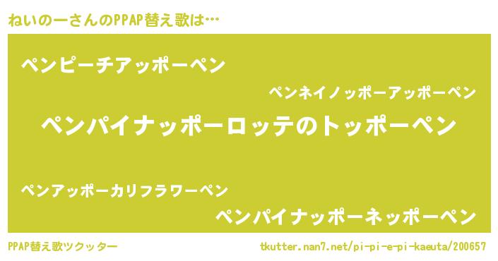 | ピコ太郎風あだ名 | 『ネネ太郎』『ネコ次郎』『ピコネ郎』 |