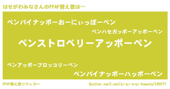 | ヘコむあだ名 | 『はせふぇ~』『はせがわみな(震え声)』 |