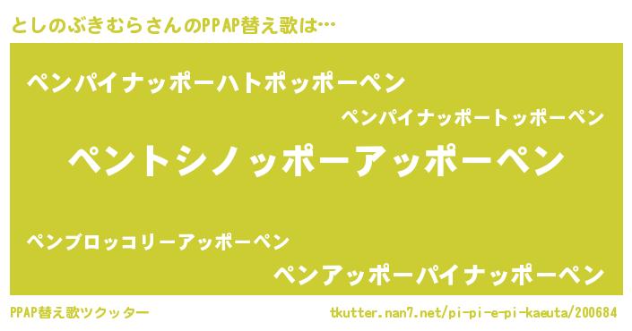| ピコ太郎風あだ名 | 『トシ次郎』『トト太郎』『ピト太郎』 |