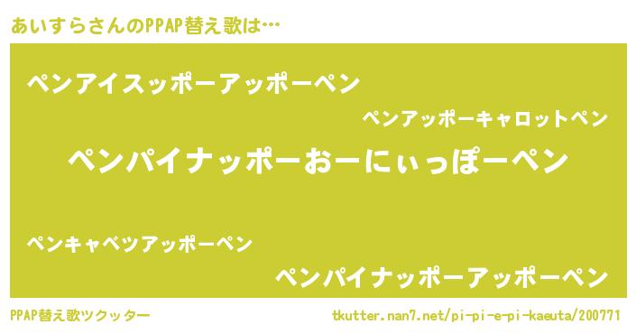 | ピコ太郎風あだ名 | 『アア太郎』『アイ次郎』『ピコア郎』 |