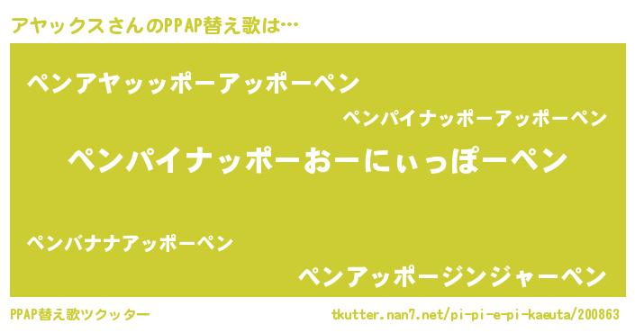 | ピコ太郎風あだ名 | 『アア太郎』『アヤ八郎』『ピア五郎』 |