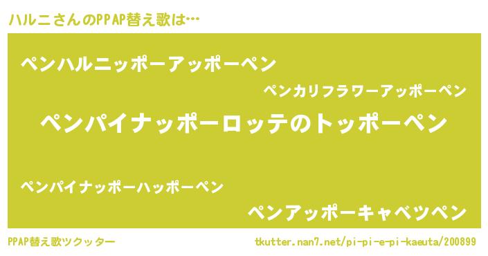 | ピコ太郎風あだ名 | 『ハハ太郎』『ハル八郎』『ピハ四郎』 |