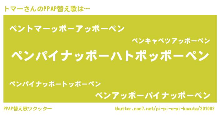 | ピコ太郎風あだ名 | 『トト太郎』『トマ八郎』『ピト八郎』 |
