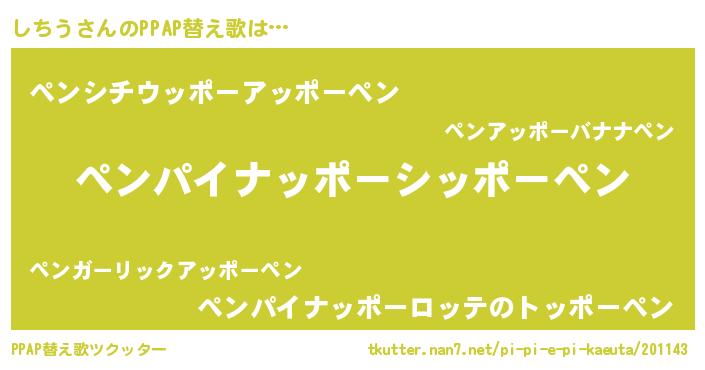 | ピコ太郎風あだ名 | 『ピコシ郎』『シチ四郎』『シシ太郎』 |