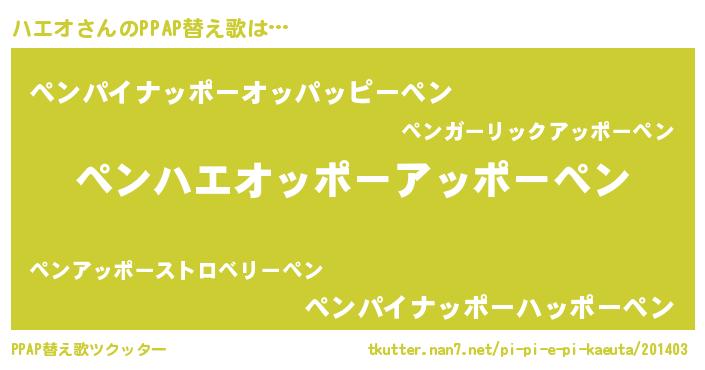 | ピコ太郎風あだ名 | 『ハエ次郎』『ハハ太郎』『ピコハ郎』 |