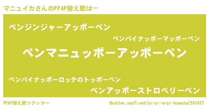 | 男性向けラノベタイトル風あだ名 | 『マニュイカの嫁は女の子じゃないと思った?』 |