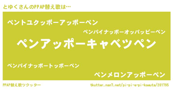 | ピコ太郎風あだ名 | 『ピト四郎』『トユ二郎』『トコ太郎』 |