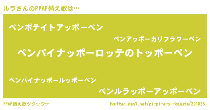 | ピコ太郎風あだ名 | 『ルル太郎』『ルコ次郎』『ルラ六郎』 |
